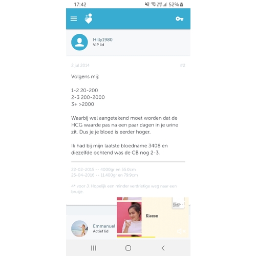 Ieder zijn hcg waarde stijgt anders. Van sommige sneller dan andere. Op amerikaanse sites staat per hoeveel hcg het stijgt. En dit kan je vergelijken met de normale waardes. Wil daarom nog niet zeggen dat het van jou niet goed zit. Heb zelf hetzelfde gedaan omdat mijn hcg heel laag was in het begin ( getest 2 dagen voor nod) en had toen 1-2 als resultaat ( 4w4d) . Eergisteren opnieuw getest met een klein hartje en had toen wél 3+ op 6w2d. Dus komt van mij wel overeen met een goede stijging. Maar opzich wil dit niets zeggen. Kon evengoed hetzelfde resultaat als jou gehad hebben als mijn hcg niet zo snel steeg.