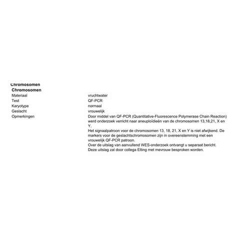 Ja heb ik gehad met 21 weken. Bij ons was het geslacht met 20 weken niet meer te identificeren. Ik heb gevraagt toen ze me belde wat is het geslacht en toen kregen we te horen meisje ik wist dit al door een pretecho maar het maakt je best onzeker als het destijds gezien was en verder in de ontwikkeling niet meer te identificeren is. Met ons kleine meid gaat het niet goed wij gaan afscheid van haar nemen na de geboorte. De vruchtwaterpunctie kwam niets uit dat was goed nieuws maar dan heb je altijd nog de echo beelden en mri scan.