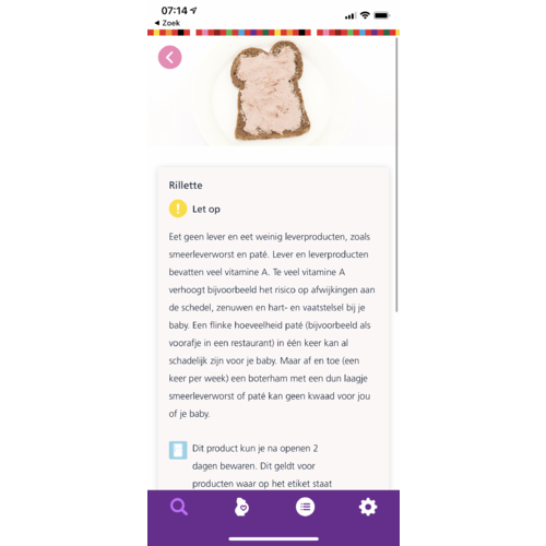 Misschien moet je de ZwangerHap app even downloaden, daar staat alles in. Rilette kan echt heel schadelijk zijn voor je baby.