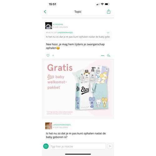Is het nu zo dat je m pas kunt ophalen nadat de baby geboren is?