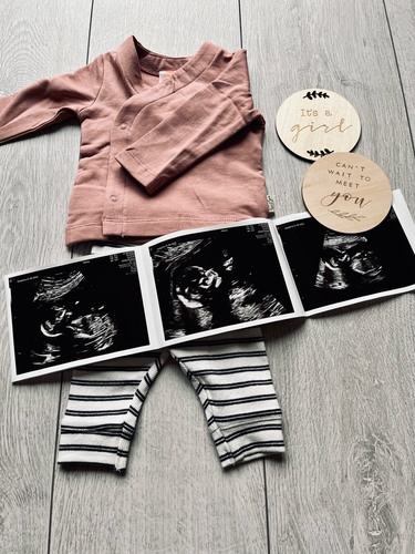 Ik heb deze foto gedeeld op socials om te vertellen aan de wereld dat wij een meisje verwachten! (Ben zoals je kunt zien niet zo van het roze of blauw, dus lekker neutraal maar wel met een girly kraagje)