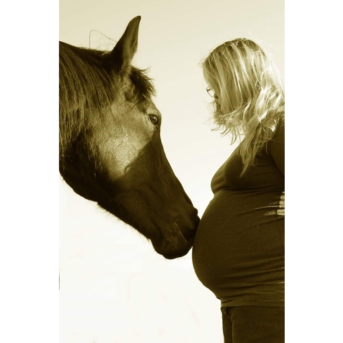 Hier was ik ongeveer 32/33 weken. Ben zelf fotografe maar hadden niet het geld op dat moment. Dus schoonzusje camera in de handen gedrukt en met een beetje aanwijzingen lekker laten klikken. Daarna zelf bewerkt. (Heb met alle 4 de paarden zo'n foto馃槏)