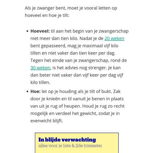 Veel succes met de zwangerschap en op tijd melden als t niet meer goed lukt. Je hebt zwaar werk. Bespreek dit ook met je verloskundige als je klachten gaat krijgen.