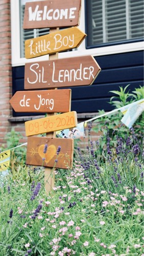 Wij hebben er zelf niet eens aan gedacht, toen wij thuiskwamen uit het ziekenhuia had onze familie binnen versierd en was er namens de buurt een geboortebord in de voortuin geplant. Terwijl we niet eens echt contact hebben met de buurt omdat we hier nog niet zo lang wonen haha