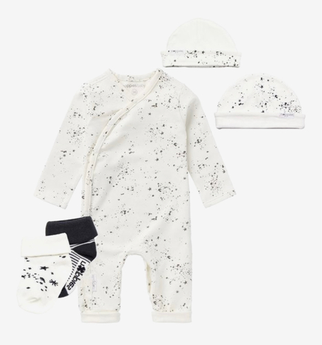 Onze jongens hadden de groene en witte pakjes met sterretjes van Noppies.