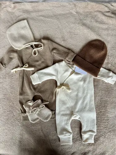Vorige keer hebben we bij prenatal iets leuks gevonden in beige/bruin tinten. We hadden dan een wat jongensachtiger mutsje en een typisch meisjes mutsje erbij meegenomen.
