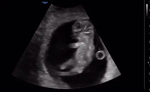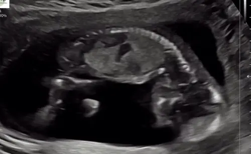 Haha onze baby lag precies zo bij de 20-weken echo! Heel gek om alles op z’n kop te zien