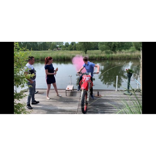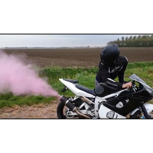 Via genderreveal.nl kun je speciaal poeder bestellen.. ik zou niet zomaar eerste de beste spul in uitlaat stoppen.. ik heb trouwens nog 2