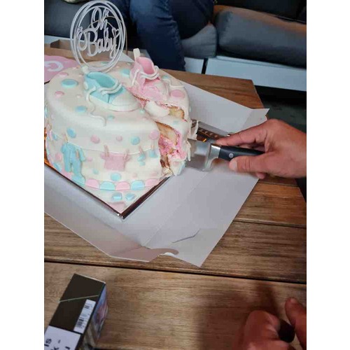 Wij vonden het wel heel leuk om te doen. Wij hadden bij de echo het geslacht op een briefje laten schrijven en hebben toen een taart laten maken, het was dus voor ons ook een verrassing toen we taart gingen aansnijden.