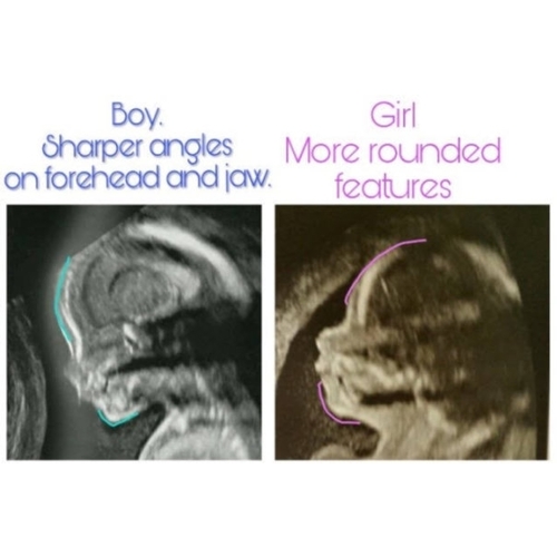 Meisjes hebben een veel rondere schedel aan de voorkant.. Mijn man heeft ook een langwerpig gezicht...