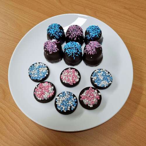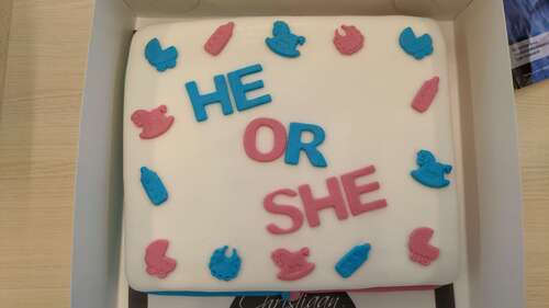 Ik heb dit op het werk getrakteerd om te vertellen dat ik zwanger was. Toen wist ik het geslacht nog niet.