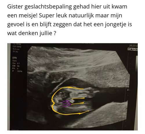 Gister geslachtsbepaling gehad hier uit kwam een meisje! Super leuk natuurlijk maar mijn gevoel is en blijft zeggen dat het een jongetje is wat denken jullie ?