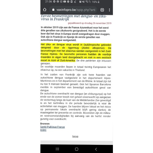 Probeer je niet te ongerust te maken over deze insecten hoor! De kans is zoo klein... En dat met alles wat hier rondvliegt aan tijgermuggen! Ging dat artikel niet over Fransen die in een ander land op vakantie zijn geweest? Of van Reunion kwamen of iets dergelijks? Dat ze daar besmet zijn?