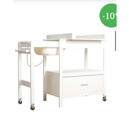 Ik weet niet wat voor een badmeubel je hebt. Maar wij hebben gewoon een verschoonkussen in de wasbak liggen (we hebben een rechthoekige wasbak). En een mandje met de benodigde spullen (luiers, badschuim, washand, doekjes etc)