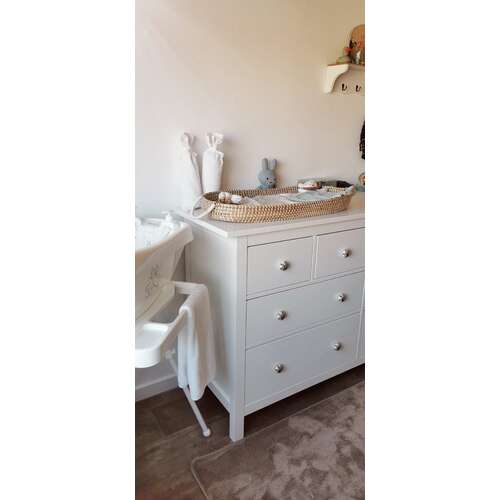Ikea hemnes. Ja zo fijn. 2 x zo groot als een standaard commode. Wij gebruiken hem al 2 jaar voor ons zoontje en gaan hem nu ook voor de nieuwe baby gebruiken.