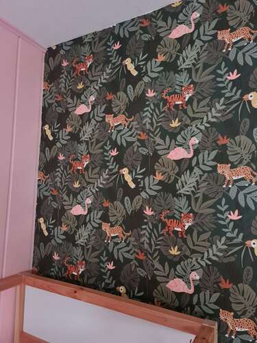 Wij hebben dit behang nu bij onze kleuter, van kwantum. De muur links ervan is roze, de rest is wit.