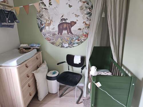 Wij hebben deze oerwoud groen van de Praxis gepakt en zijn zo blij met het resultaat! Hele mooie warme tint die mooi past bij witte en rotan spulletjes. Wij hebben verder alle muren en meubeltjes wit🥰