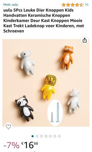 Ik heb deze porseleinen knopjes met bosdieren erop via Etsy handgemaakt. Duurde 3 wkjes. En toen er 1 kapot was gegaan stuurde ze voor niks een nieuwe op. 😍