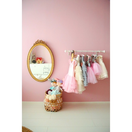Ik had bij mijn dochter een gordijnstang aan de muur. Nu jaren later hangt ze haar verkleedjurken eraan.