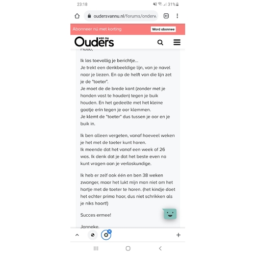 Om het te kunnen horen moet je voelen hoe je baby ligt, want dan kan je de toeter op de goede plek leggen (namelijk dichtbij het hartje van de baby).