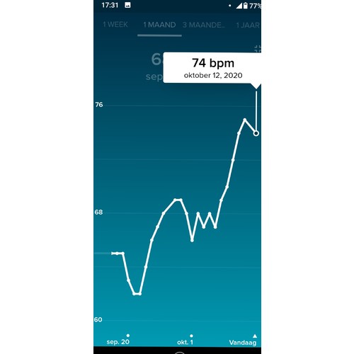 Mijn hartslag steeg ook vanaf het begin af aan. Dit is mijn gemiddelde hartslag in rust per maand. Nu 37 weken zwanger, dus innesteling was half februari. 鈽猴笍