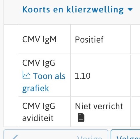 Ah shit wat spannend zeg 🙁 die 2 weken lijken dan echt jaren te duren. Heb je veel informatie vanuit je arts kunnen krijgen? Volgens mij hanteren ze net wat andere waarden in belgie dan bij NL denk ik. Wat vervelend dat je in juli nog negatief was bij allebei, dat is helaas niet heel lang geleden 😣 heb je ergens in de tussentijd nog klachten of symptomen gehad van cmv?