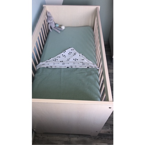 Klopt! Voorlopig slaapt de kleine ook bij ons in de kamer in de co sleeper dus duurt nog wel even doordat ie in het ledikantje gaan liggen. Voor nu is het gewoon voor de netheid, en later kan het altijd nog ‘correct’ opgemaakt worden 😙