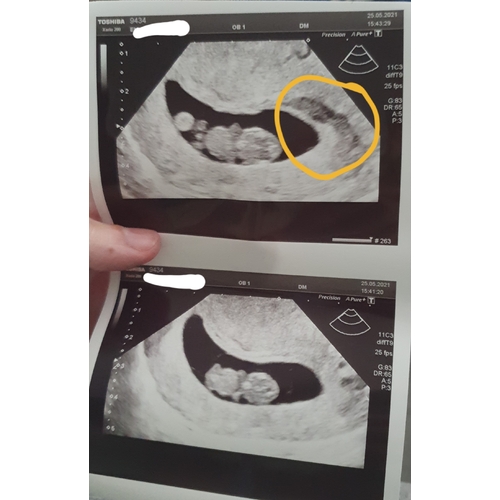 Vorige zwangerschap wist ik niet dat het er 2 waren. Verloor lange tijd bruin bloed.. tot op een zondag een vruchtje.. dacht het is klaar. Dag erna. Spoed echo en bleek kindje met een goed hartje te zitten. Barste in tranen uit.. had het laten zien. Had foto gemaakt en toen zei ze duidelijk echt een miskraam..