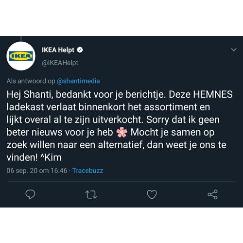 Nee, de Hennes. IKEA medewerker vertelde meer als troost dat er een 'vervan ...