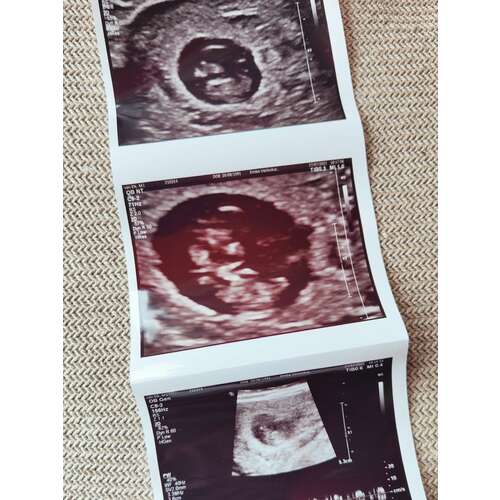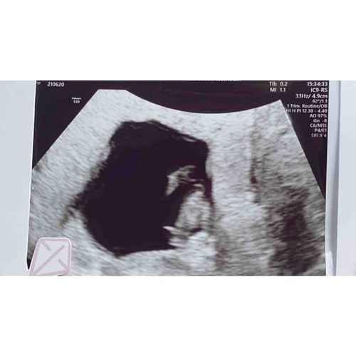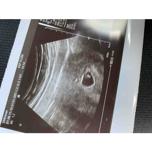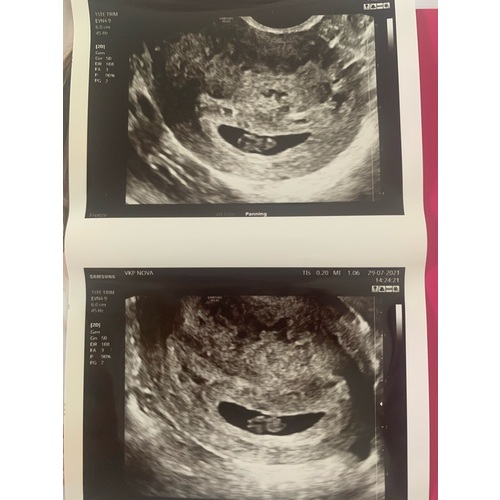 Vandaag de eerste echo gehad! Iets minder ver dan gedacht, 7+1 en een mooi kloppend hartje🥰 wie durft een gok te doen?😜💙💗 dit is een inwendige echo!
