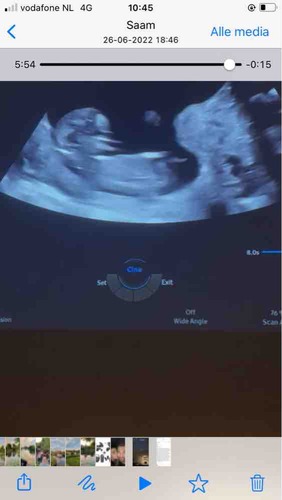 Jammergenoeg kan ik van de laatste echo ook de nub niet goed zien. En weet ook niet zeker of het de blaas is wat ik zie. Als je een filmpje hebt zou het mooi zijn als je een paar foto's maakt van stilstaand beeld. Maakt niet uit of het er meerdere zijn en of je toch wat van het beentje ziet zoals bij de vorige echo. Want soms lukt het met bewerken alles toch scherper en duidelijker te krijgen. Filmpjes kun je volgens mij nog steeds niet plaatsen in dit forum. Op het moment begin ik een beetje te neigen naar dat het een jongen in wording is. Maar moet daar toch wat meer dingen voor zien voor ik een gok neem.