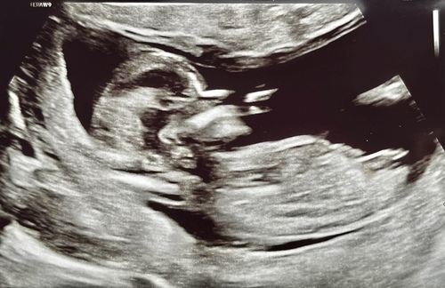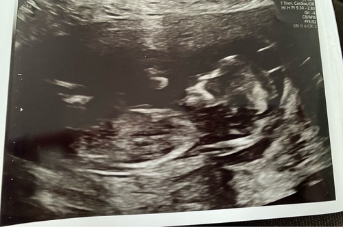 Hee allemaal, zojuist een echo gehad op 13+4. Ik weet niet zo goed of dit een goede foto is voor de nub.. iemand die een gokje kan wagen op basis hiervan? 🥰💖🩵