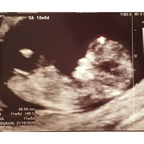 Vandaag onze eerste echo. Ik dacht zelf 10+6 maar nu bijgesteld tot 11+5. B ...