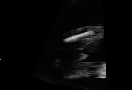 Iemand die hier de nub ziet? De baby lag in een kleermakerszit dus met beentjes over elkaar. Ik vraag mij af of het ‘bolletje’ aan de bovenkant de nub kan zijn of dat deze lager zit..