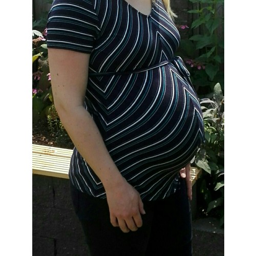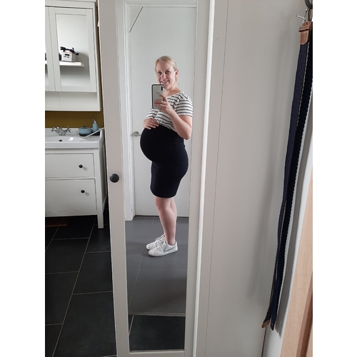 Toen ik zwanger was van mijn dochtertje, was dit mijn buik met iets van 37 weken. Aan de achterkant konden mensen zo niet zien dat ik zwanger was. Ik droeg dus echt naar voren. Nu 17 weekjes zwanger en heb ik het idee dat ik ook iets meer aan de zijkant groei. 30 juni weet ik of ons tweede kindje een jongen of een meisje wordt. Super benieuwd! 🤗