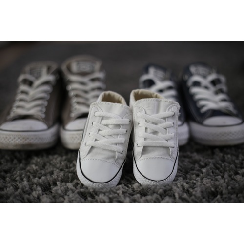 Wij hebben deze foto op Facebook gezet met 13/14 weken! We zijn allebei erg gehecht aan onze all stars in de zomer dus de eerste aankoop waren baby all stars 😂😂😂