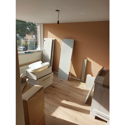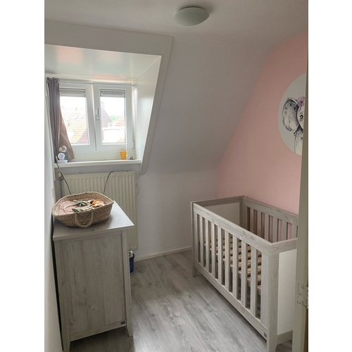 Hier een kamertje van ca 6 m2 met een peuterbed van 80x160, ledikant van 60x120 en een commode. Onze kindjes gaan een kamertje delen.
