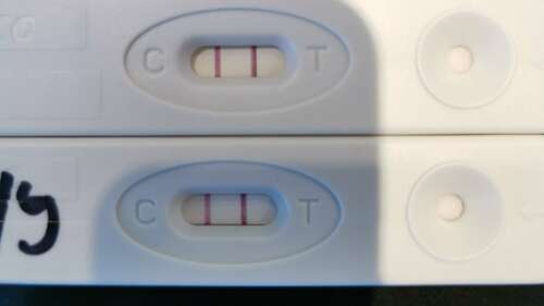 Ik zie een test die niet donkerder kan hoor. Testlijn is bij beiden donkerder dan de controlelijn! Dus geen zorgen.