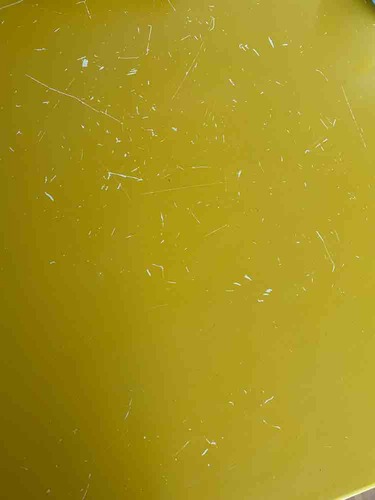 Is de ondergrond laminaat of een ander materiaal, ook hier eerst de gele verf weg schuren. Dan schoonmaken, en dan: primer!!! Kies een primer die past bij je lak. En na de primer kun je je nieuwe lak erop zetten.