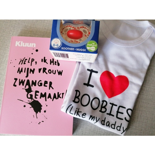 Nu deze zwangerschap van de tweede, deed ik de test alleen en mocht mijn man die dag uitslapen (in het weekend slapen we allebei een dag uit). Ik had mijn zoontje een shirt aangetrokken met de shirt Big Bro en de hele ochtend gewacht tot we hem wakker konden maken. Uiteindelijk naar boven en hij zei.. oh leuk heeft hij een nieuw shirt? Dus ik jaaa... hij: oh mooi. Ik weer van.. jaa wat staat er dan. Dus hij: oh bro, cool bro en begon met mijn zoontje te stoeien.