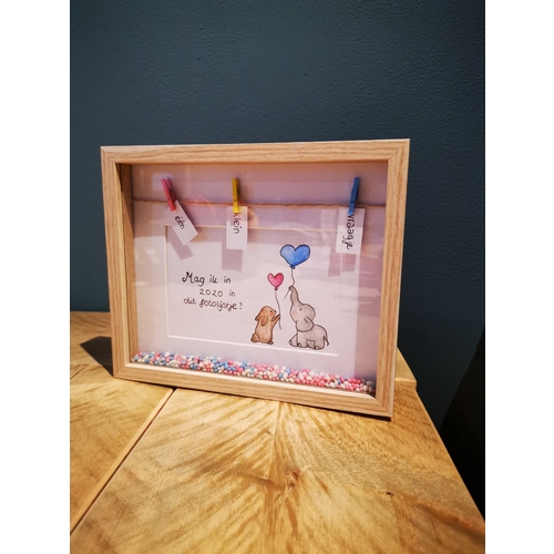 Onze baby is in de vakantie verwekt, dus wij hadden n fotoboek gemaakt met helemaal achterin een foto van het souvenir ;)
