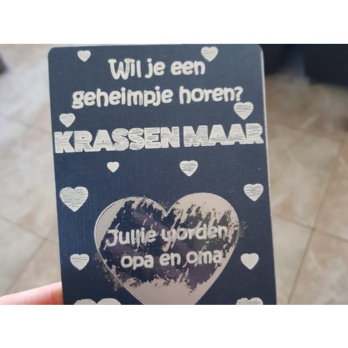 Shirt laten bedrukken en mijn dochter aan laten trekken en gevraagd of oma en opa de jas uit kon trekken. De reacties waren geweldig.
