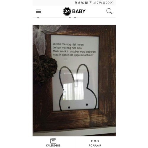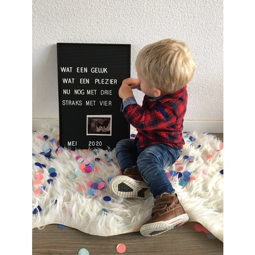 Ik heb het Nijntjelijstje zoals hieronder aan de opa's en oma's gegeven. De tantes en ooms kregen 'baby' in chocoladeletters. Voor goede vrienden had ik chocolaatjes met roze en blauwe muisjes bij de koffie op tafel gezet. Mijn collega's stuur ik een anonieme kaart "baby is on his way" iets in die richting... Om het facebookofficial te maken ga ik een filmpje opnemen, gevulde schoenen van ons bij de openhaard (Sinterklaas thema)