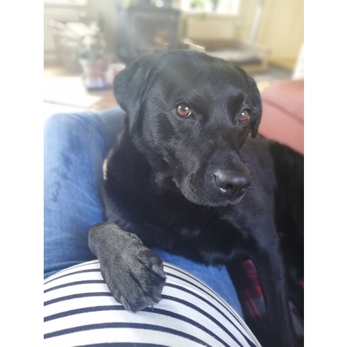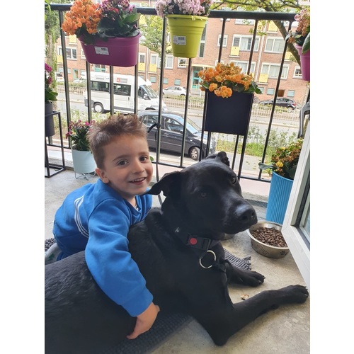 Een labrador 😊 maar ergens in de familie is ooit iemand vreemd gegaan met een stafford denken we (ze heeft geen stamboom). Echt een heerlijk ei is 't, ziet er indrukwekkend uit, maar kroop vanmiddag nog op schoot omdat de koeien toch wel erg veel herrie maakten 😅