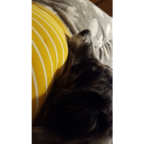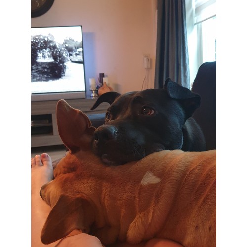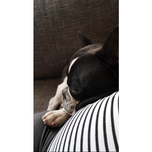 Onze hond ligt altijd al erg graag bij mij, dus merk niet zoveel verschil. Wel dat andere honden ineens meer bij me komen liggen, die dat eerder niet zo deden.