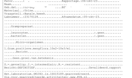Omdat ik dus ook in de veronderstelling was dat het schoon was/is, maar ik toch dezelfde klachten heb ging ik daarom twijfelen of ik de uitslag van die kweek dan wel goed begreep. Al leek het me ook weer sterk dat als die niet goed was ze dat niet erbij gezegd zouden hebben.