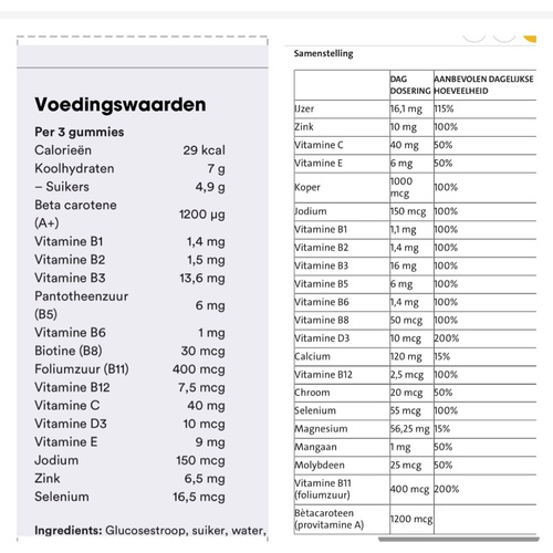 Ik gebruik al maanden yummy gums en mijn waardes zijn gemiddeld. Alleen vitamine d tekort, dus ik neem nog extra yummy gum sunny naast multi vitamine als extra erbij. Ja het is duur, maar wel vegan (wat ik zelf belangrijk vind), en zelf kan ik helaas geen pillen slikken. Dit al sinds klein af aan, het lukt mij gewoon niet. Zelfs een paracetamol slik ik niet maar ik kauw het eerst en dan met water doorspoelen. Dus voor mij zijn de yummy gums een verlossing… En mijn bloedwaardes waren perfect, zelfs suiker, ookal zijn ze zoet…