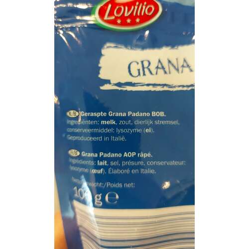 Grana padano is min of meer de gepasteuriseerde versie van Parmezaanse kaas, dus het is 100% veilig. Rauwe melk wordt op de verpakking altijd specifiek vermeld met 'rauwe melk' of op z'n Frans 'au lait cru'. Alle 'harde' rauwmelkse kazen zijn bovendien veilig om te eten (dus Parmezaanse kaas en ook boeren Goudse kaas is oké). Listeria groeit namelijk alleen op de vochtige korst van rauwmelkse zachte kazen (rauwmelkse brie, camembert, blauwe kaas, etc.).