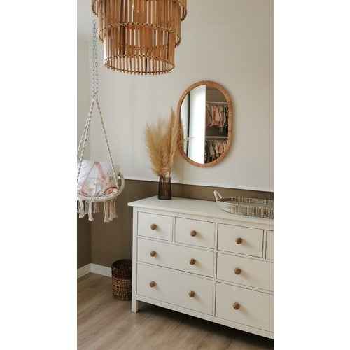 Wij hebben als commode ook een Hemnes kast (tweedehands op Marktplaats gescoord), maar ik heb hem wel een eigen kleurtje gegeven en andere (goudkleurige) knoppen erop gezet. Ziet er meteen heel anders uit vond ik. Wel jammer dat de Bekvam kruidenrekjes nu niet online verkrijgbaar zijn, want die zou ik nog naast de spiegel willen hebben, maar die komen dan later nog wel een keer.