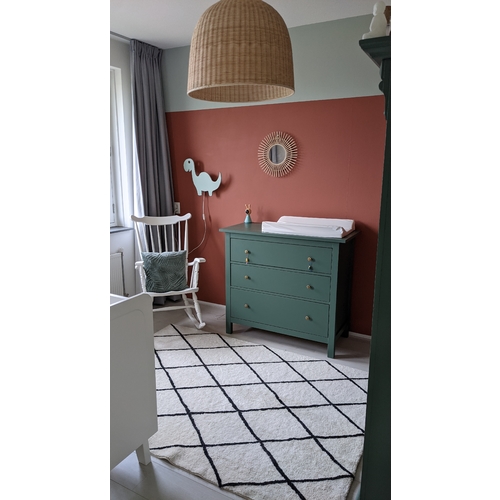 Hier ook alles van Ikea. Wij hebben het Sundvik bedje en de grote Malm ladekast. Ik ben niet zo lang maar wilde wel graag een grote commode, alleen de grote kasten zoals Hemnes zijn voor mij te hoog. Mijn man heeft daarom pootjes onder de Malm gezet en nu is het perfect 😁